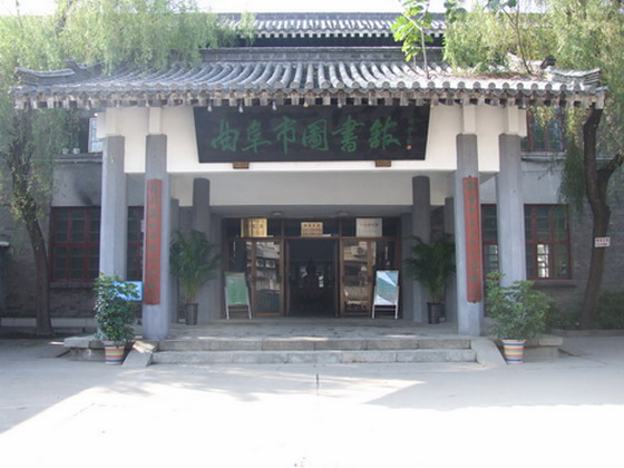 曲阜市图书馆古色古香,幽静典雅,于1990年对外开放,原中宣部副部长、文化部代部长贺敬之题写馆名。2014年4月,曲阜市政府批准设立孔子图书馆,和曲阜市图书馆合署办公。