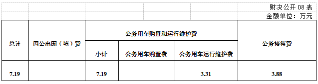 2016年,本部门通过公共预算财政拨款安排的因公出国(境)、公务用车购置及运行、公务接待等经费支出共7.19 万元,比上年减少 3.81 万元,降低 35 %。其中: