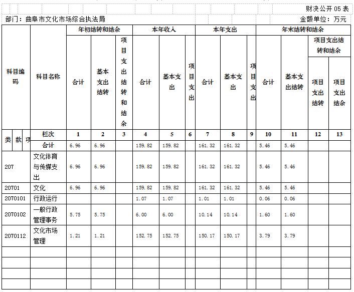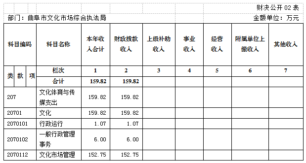 3、单位构成。市文化市场综合执法局是按照市级预算管理有关规定,预算编制实行综合预算,局机构的收入和支出均纳入年度预算,无下属单位。