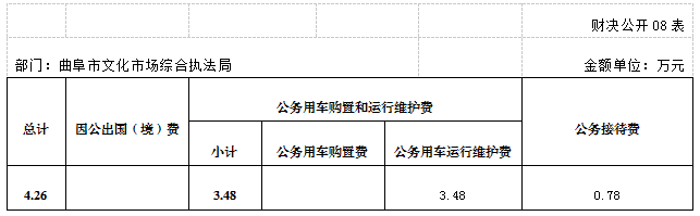 2016年,本部门通过公共预算财政拨款安排的因公出国(境)、公务用车购置及运行、公务接待等经费支出共4.26万元,比上年减少0.45万元,降低9.55 %。其中:
