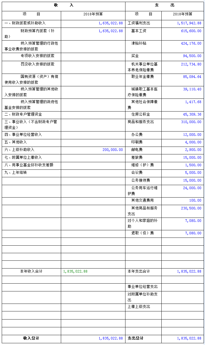 2018年部门预算表