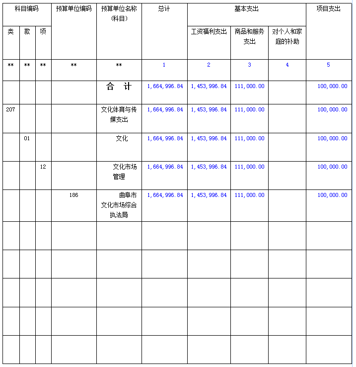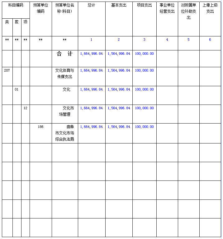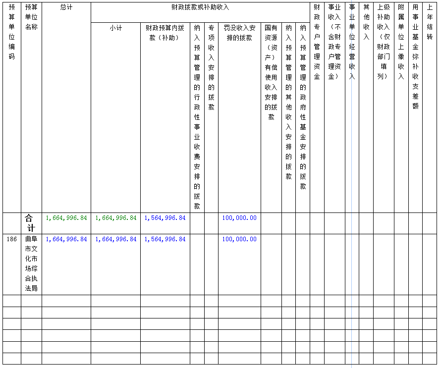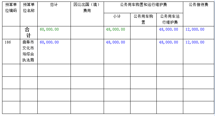 曲阜市文化市场综合执法局为全额事业单位,无机关运行经费。