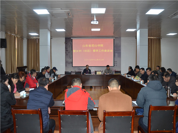 12月12日下午,山东省尼山书院暨乡村(社区)儒学工作座谈会在曲阜市图书馆尼山书院召开。省图书馆副馆长、省尼山书院秘书长李西宁、省图书馆辅导部主任陶嘉今、省尼山书院理事、全省十七地市图书馆馆长、各市尼山书院负责人等参加了座谈会。