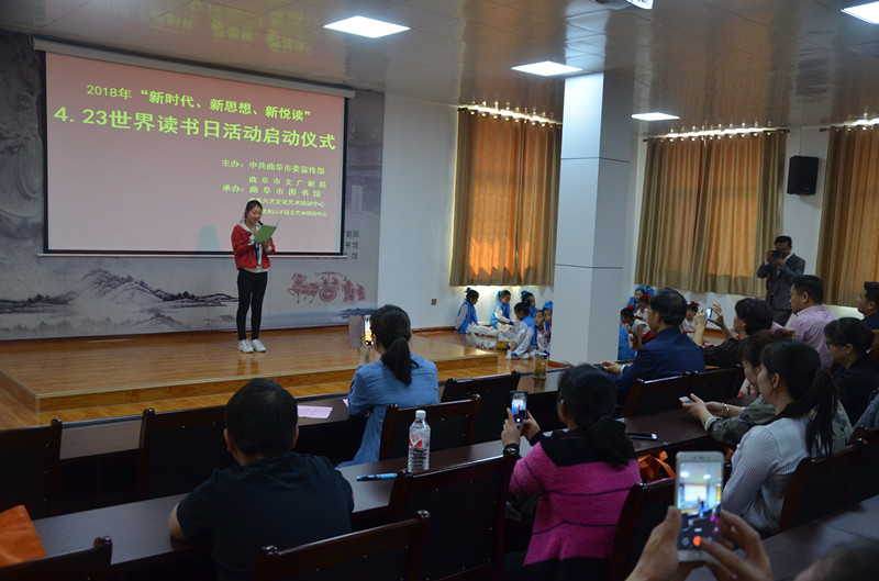 4月23日,曲阜市 “新时代、新思想、新悦读”4·23世界读书日活动启动仪式在曲阜市图书馆举行。此项活动由中共曲阜市委宣传部、曲阜市文广新局主办,曲阜市图书馆、曲阜六艺文化艺术培训中心、曲阜星光口才语言艺术培训中心承办,曲阜市文广新局副局长张宏、曲阜市图书馆馆长孔德安、文化科科长王海波等领导出席了启动仪式。