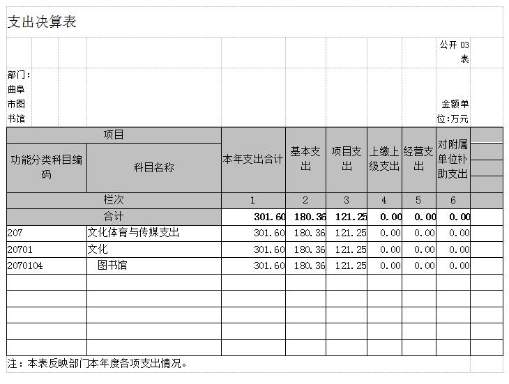 2017年度本部门决算支出301.6万元,比上年增加77.43万元,增长34%,主要原因为:2017年拨入了图书馆评估定级专项经费,支出增加。与2017年度部门预算支出176.74万元相比,多支124.86万元,主要原因为:预算中未包含上级转移支付资金免费开放经费和图书馆评估定级专项经费而实际决算支出中有此部分。多支资金的来源为:追加预算和上级转移支付资金。