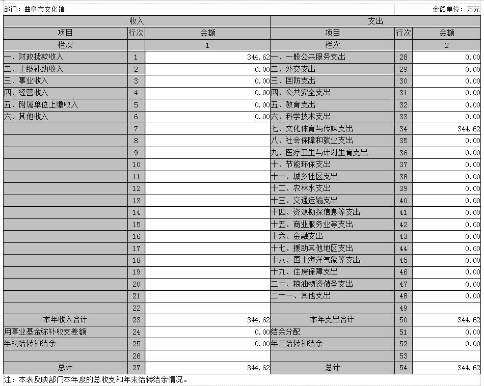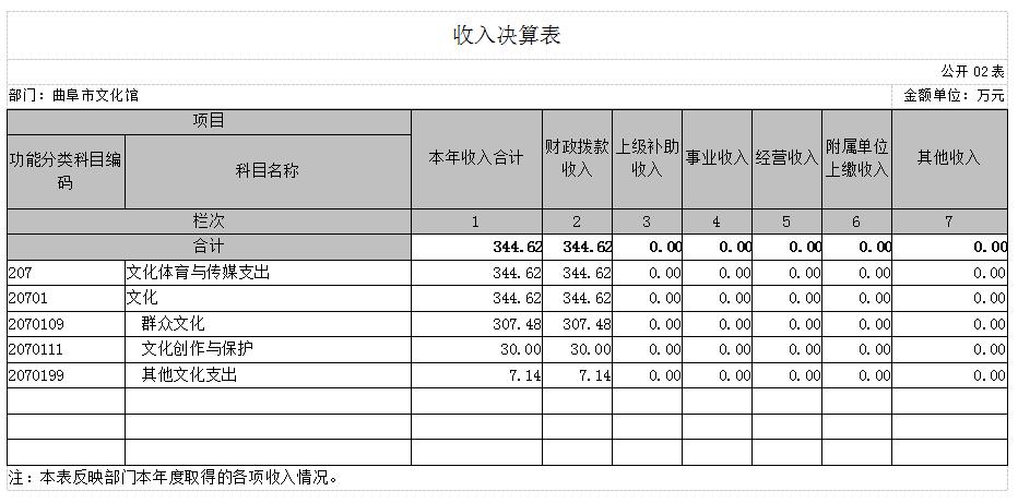 2017年度本部门决算收入344.62万元,比上年增加47.56万元,增长16 %,主要原因为:人员增加1人,薪级调整增资,非遗保护资金等财政收入增加。与2017年度部门预算收入329.9万元相比,多收14.72万元,主要原因为:人员增加1人,薪级调整增资,非遗保护资金等财政收入增加。