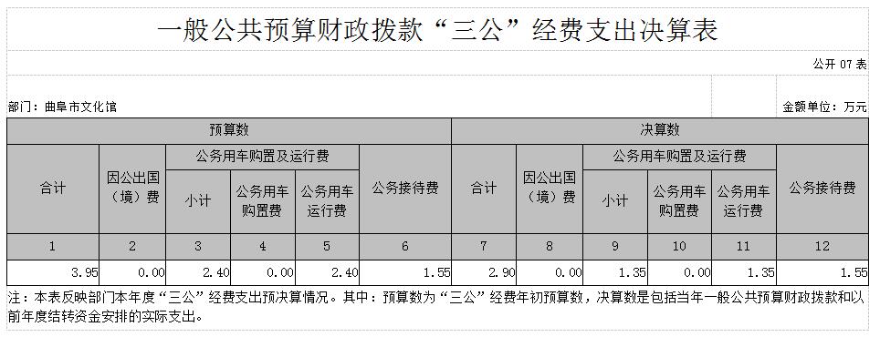 2.三公经费数据口径:当年公共预算财政拨款(含年度执行中追加预算)和上年公共预算财政拨款结转结余资金安排的“三公经费”实际支出。