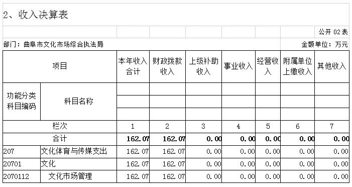 3、单位构成。市文化市场综合执法局是按照市级预算管理有关规定,预算编制实行综合预算,局机构的收入和支出均纳入年度预算,无下属单位。