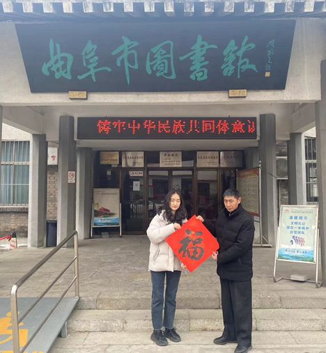 在新春即将来临之际,曲阜市图书馆为广大读者送“福”字,增添了浓浓暖意。一张张“福”字送到读者手中,在这小小的“福”字中,蕴含了图书馆全体工作人员对广大读者的新春祝福,祝广大读者新的一年金龙翱翔,好运连连,前程似锦,梦想成真。